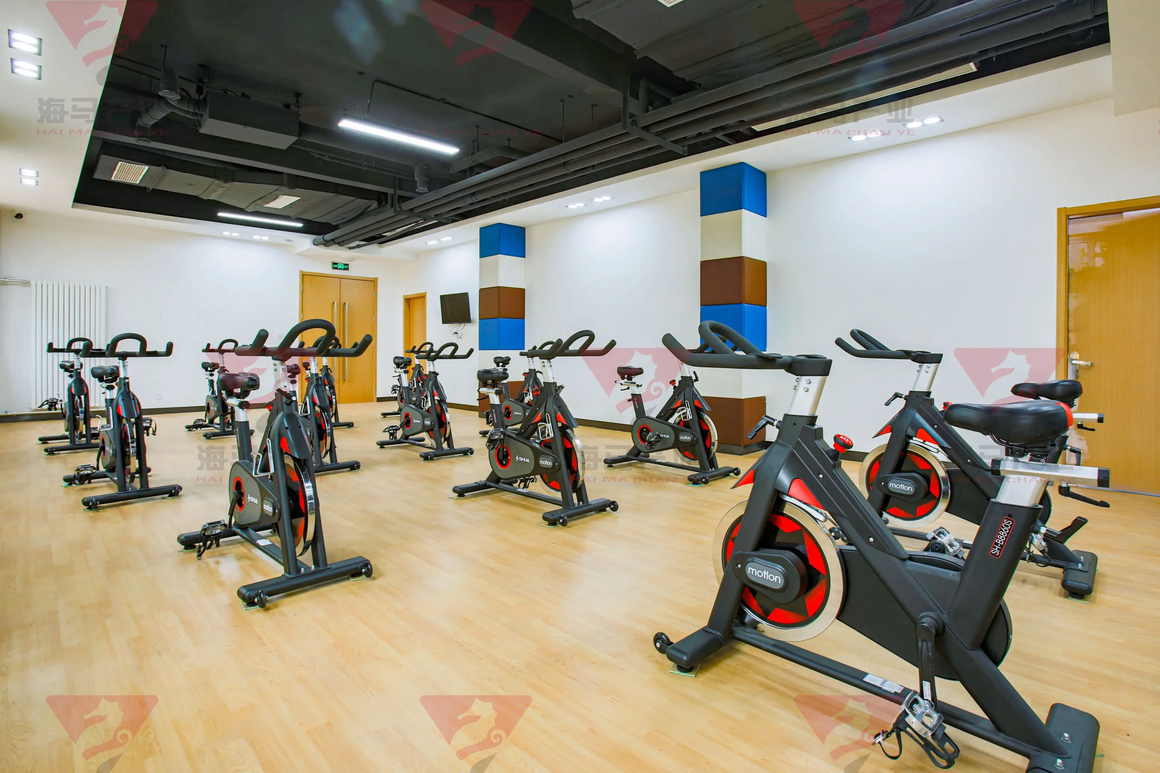 二层为动感单车、跑步机、私教区域以及其他力量健身区;合计面积约为300平方;主要为有氧运动以及力量训练。